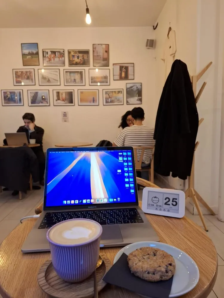 不誇張,從去年 10 月我拿到心流鐘後,它真的是跟著我到處跑🦵🦵,無論是在台中的工作室、在巴黎的咖啡店、在荷蘭朋友家的客廳、捷克布拉格的 Airbnb,又或是在花蓮海邊旅行與屏東的老家,都有它跟我一起工作、專注的身影。